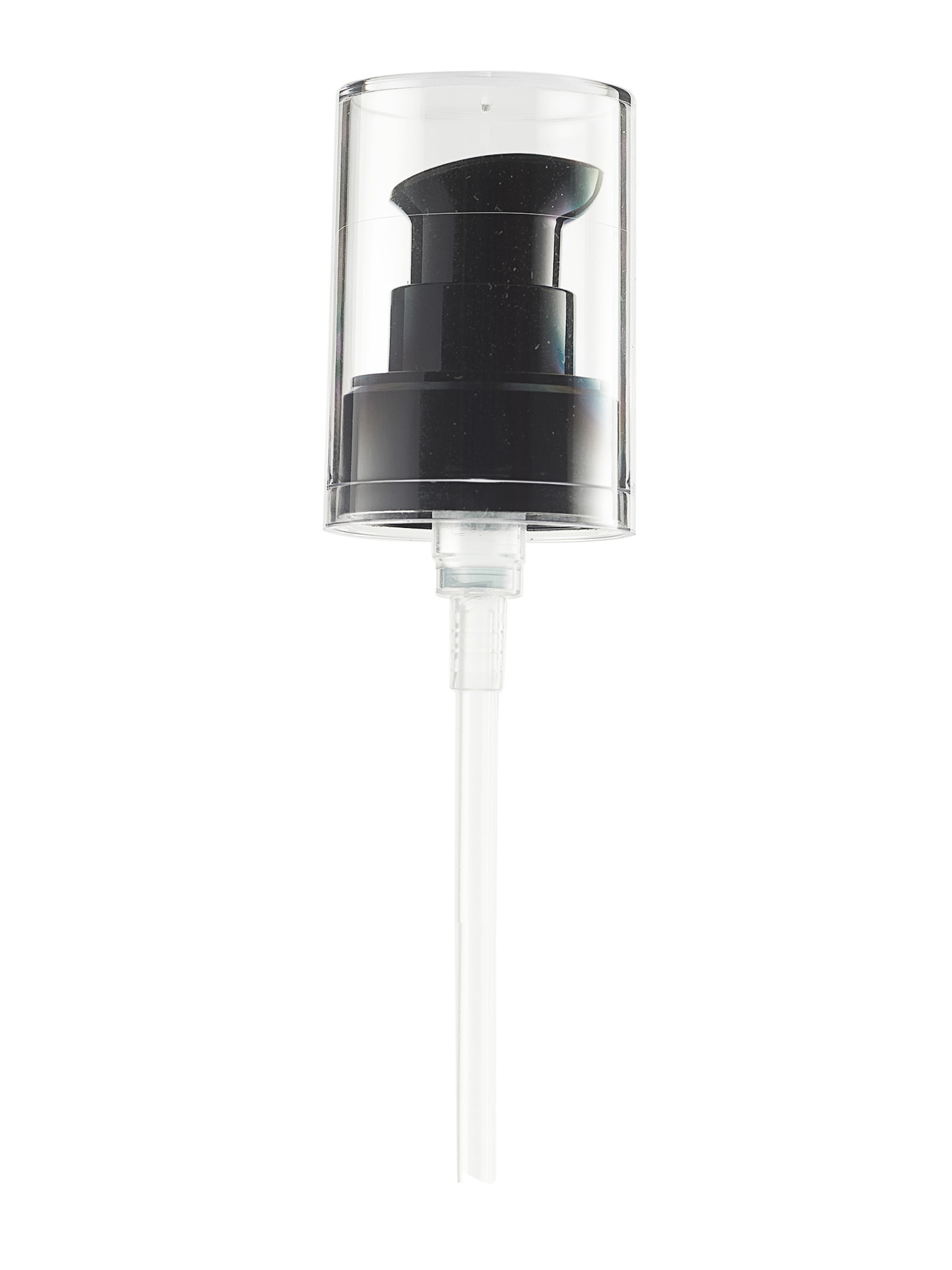 Чёрный глянцевый дозатор 20/410 с прозрачным колпачком — удобное решение для кремов, лосьонов и сывороток. Обеспечивает точную подачу продукта без подтеков и подходит для флаконов с горлом стандарта 20/410. Современный лаконичный дизайн делает упаковку аккуратной и универсальной.