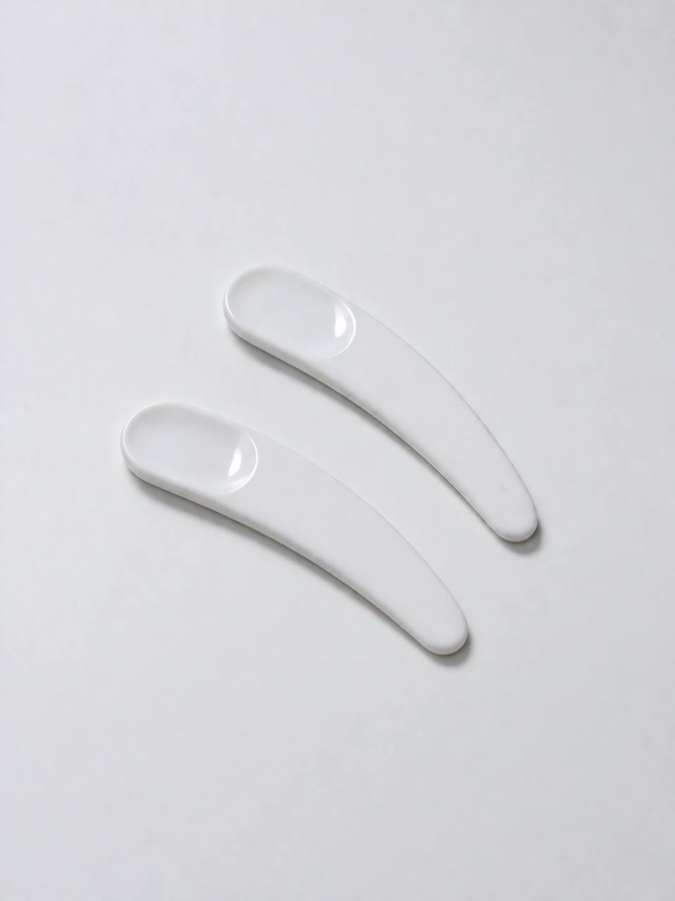 Ложечка для крема белая — компактный и удобный аксессуар для гигиеничного набора косметических средств из банок. Подходит для кремов, масок, патчей и других продуктов плотной и средней текстуры.