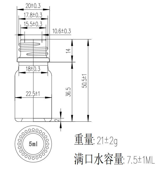 Коричневый стеклянный флакон объемом 5 мл. для пробников. Может быть укомплектован крышкой капельницей или крышкой с глухой пробкой.