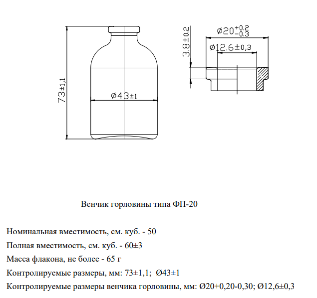 Флакон объемом 50 мл. предназначен для косметических, медицинских и пищевых продуктов.