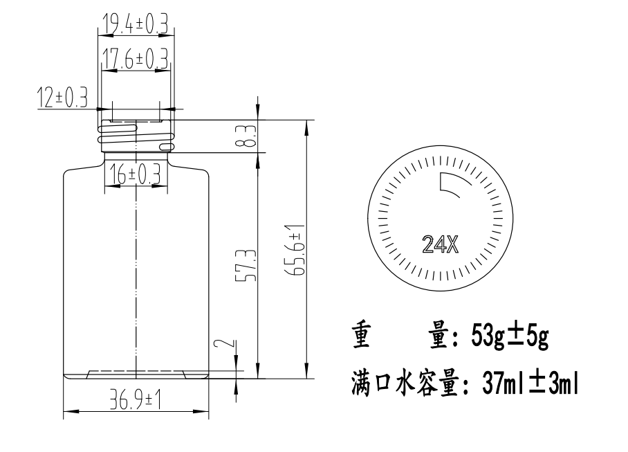 Стеклянный матовый прозрачный флакон 30 мл 20/410 c прямыми плечами