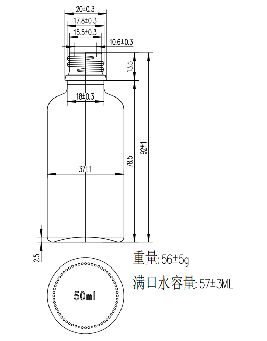 Стеклянный матовый прозрачный флакон 50 мл 18/410